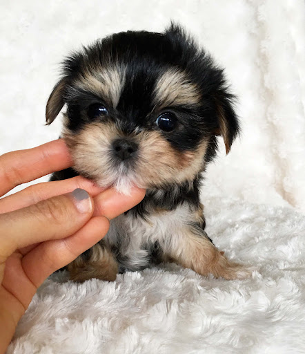 She is the perfect looking morkie with an ado. Since morkies are small dogs they typically spend less time. She is 11 weeks old and only weighs 2 lbs, her expected weight is 4 lbs when fully grown.